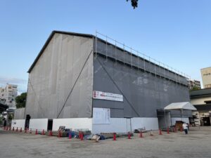 HOME > 令和7年10月2日 工事近況 令和7年10月2日 工事近況 2025.10.02 足場、素屋根など、覆屋が組み立てられました。 10月から屋根の解体がはじまります 解体前には現状調査が行われ、屋根の銅板が外されます 年内には修理部分の銅板が全て取り外される予定です « 前の記事